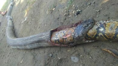 ชาวบ้านช็อก! จงอางเขมือบงูเหลือมตัวใหญ่