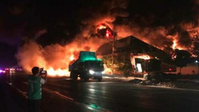 โกดังน้ำมันเครื่องไหม้ สูญนับร้อยล้าน ก่อนใช้วิธีเททรายดับเพลิง