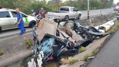 รถกระบะชนเสาไฟจนตกร่องน้ำ หลังคาหายทั้งแผ่น สังเวย 3 ศพ