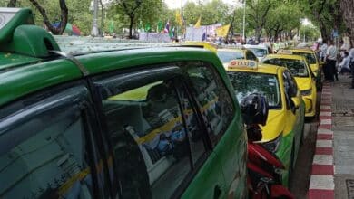 คนขับแท็กซี่ชุมนุม บี้รัฐบาลยกเลิก Grab สุวรรณภูมิ ขู่ปิดทางเข้าสนามบิน