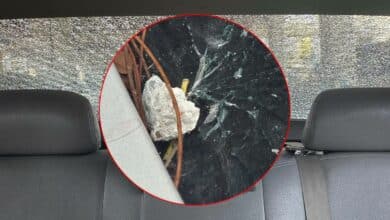 สาวระทึก ปูนร่วงจากสะพานพระราม 2 ตกใส่กระจกหลัง แตกทั้งบาน