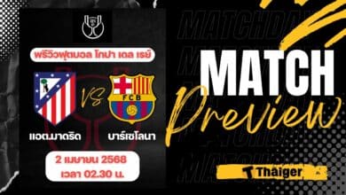 2 เมษายน 2568 เวลา 02.30 น. ถ่ายทอดสด ดูบอลสด ฟุตบอล โกปา เดล เรย์ ฤดูกาล 2024/25 แอต.มาดริด พบ บาร์เซโลนา The Thaiger พาไปวิเคราะห์เกม พร้อมการทำนายผล และคาดการณ์ 11 ตัวจริงได้ที่นี่ ดูบอลสด โกปา เดล