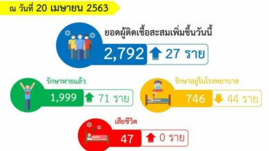 สรุปสถานการณ์โควิด-19 ประเทศไทยประจำวันที่ 20 เมษายน 2563