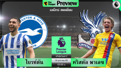 ดูบอลสด พรีเมียร์ลีก ไบรท์ตัน พบ คริสตัล พาเลซ พรี