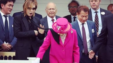 ตายแล้ว! โยชิกิ X-Japan อ้าปากค้าง ลมพัดผ้าพันคอเขาพาดไหล่ควีนอังกฤษ