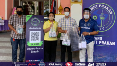 ฝ่าไปด้วยกัน! สมุทรปราการ ซิตี้ แจกแอลกอฮอล์ หน้ากากอนามัย สู้โควิด-19