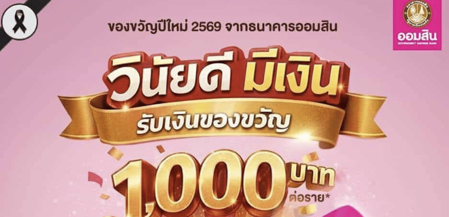 ออมสินแจกเงินขวัญถุง 1,000 บาท ลูกหนี้วินัยดี เริ่มโอนกุมภาพันธ์ 2569 ใครมีสิทธิ-ต้องกดรับสิทธิผ่านแอปฯ MyMo อย่างไร ดูเงื่อนไขที่นี่ ธนาคารออมสินต้อนรับปีใหม่ 2569 ผ่านโครงการ วินัยดี มีเงิน ด้วยการมอบเงินของขวัญพิเศษจำนวน 1,000 บาท ให้แก่ลูกค้าธนาค...
