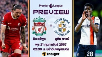 21 กุมภาพันธ์ 2567 เวลา 02.45 น. ถ่ายทอดสด ดูบอลสด ฟุตบอล พรีเมียร์ลีก ฤดูกาล 2023/24 ที่สนาม แอนฟิลด์ ลิเวอร์พูล จะลงเล่นพบกับ ลูตัน ทาวน์ The Thaiger พาไปวิเคราะห์เกม พร้อมการทำนายผล และคาดการณ์ 11