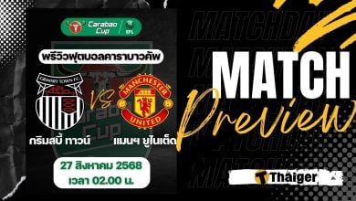 กริมสบี้ ทาวน์ พบ แมนยู ดูบอลสด ฟุตบอลคาราบาวคัพ 2025/26 วันที่ 27 ส.ค. 68