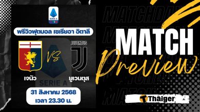 31 สิงหาคม 2568 เวลา 23.30 น. ถ่ายทอดสด ดูบอลสด ฟุตบอล กัลโช่ เซเรียอา อิตาลี ฤดูกาล 2025/26 ที่สนาม ลุยจิ เฟอร์ราริส เจนัว พบ ยูเวนตุส The Thaiger พาไปวิเคราะห์เกม พร้อมการทำนายผล และคาดการณ์ 11 ตัวจ