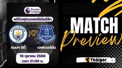 18 ตุลาคม 2568 เวลา 21.00 น. ถ่ายทอดสด ดูบอลสด ฟุตบอล พรีเมียร์ลีก ฤดูกาล 2025/26 ที่สนาม เอติฮัด สเตเดี้ยม แมนซิตี้ พบ เอฟเวอร์ตัน The Thaiger พาไปวิเคราะห์เกม พร้อมการทำนายผล และคาดการณ์ 11 ตัวจริงไ