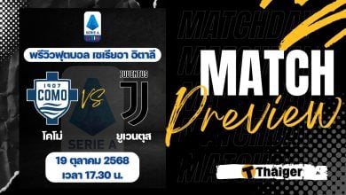 19 ตุลาคม 2568 เวลา 17.45 น. ถ่ายทอดสด ดูบอลสด ฟุตบอล กัลโช่ เซเรียอา อิตาลี ฤดูกาล 2025/26 ที่สนาม สตาดิโอ จูเซ็ปเป้ ซินิกาเกลีย โคโม่ พบ ยูเวนตุส The Thaiger พาไปวิเคราะห์เกม พร้อมการทำนายผล และคาดก
