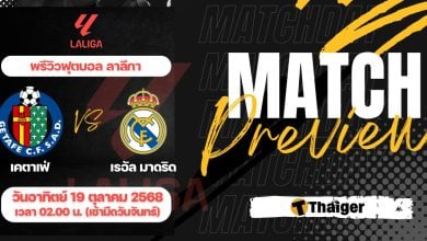 19 ตุลาคม 2568 เวลา 02.00 น. ถ่ายทอดสด ดูบอลสด ฟุตบอล ลาลีกา ฤดูกาล 2025/26 ที่สนาม โคลิเซอุม ระหว่าง เคตาเฟ่ พบ เรอัล มาดริด The Thaiger พาไปวิเคราะห์เกม พร้อมการทำนายผล และคาดการณ์ 11 ตัวจริงได้ที่น