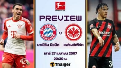 27 เมษายน 2567 เวลา 20.30 น. ถ่ายทอดสด ฟุตบอล บุนเดสลีกา เยอรมัน ฤดูกาล 2023/24 นัดที่ 31 ที่สนาม อัลลิอันซ์ อารีน่า : บาเยิร์น มิวนิค จะลงเล่นพบกับทีม แฟรงค์เฟิร์ต The Thaiger พาไปวิเคราะห์เกม พร้อมก