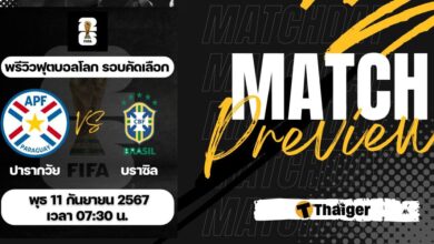 ปารากวัย พบ บราซิล ดูบอลสด ฟุตบอลโลก 2026 รอบคัดเลือก โซนอเมริกาใต้ วันที่ 11 ก.ย. 67