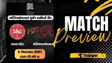 5 กันยายน 2567 เวลา 01.45 น. ถ่ายทอดสด ดูบอลสด ฟุตบอล ยูฟ่า เนชั่นส์ ลีก ที่สนาม พาเค่น เดนมาร์ก พบ สวิตเซอร์แลนด์ The Thaiger พาไปวิเคราะห์เกม พร้อมการทำนายผล และคาดการณ์ 11 ตัวจริงได้ที่นี่ ดูบอลสด