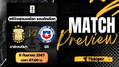 6 กันยายน 2567 เวลา 07.00 น. ถ่ายทอดสด ดูบอลสด ฟุตบอลโลก 2026 โซนอเมริกาใต้ ที่สนาม เอสตาดิโอ มาส โมนูเมนทัล อาร์เจนตินา พบ ชิลี The Thaiger พาไปวิเคราะห์เกม พร้อมการทำนายผล และคาดการณ์ 11 ตัวจริงได้ท