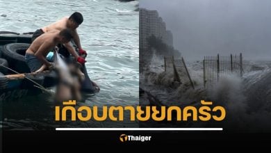 คิดได้ไง พ่อแม่พาลูกเล็ก ท้าไต้ฝุ่นซาการา ถูกซัดตกทะเลยกครัว ฮ่องกง