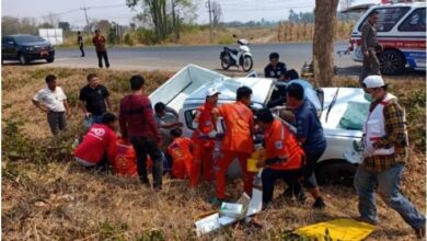 หมาวิ่งตัดหน้า หนุ่มโคราชพุ่งกระบะอัดต้นไม้ยับ เมียท้องแก่ตายทั้งกลม