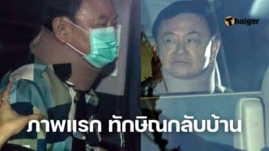 เปิดภาพ “ทักษิณ” กลับบ้าน เข้าเฝือก ป่วยจริง อุ๊งอิ๊ง รอคอยมาแสนนาน