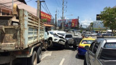 10 ล้อเบรคแตก พุ่งชนรถยนต์จอดข้างทางยับ 10 คัน