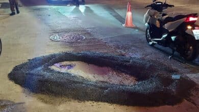 สุดชุ่ย จยย. หลบหลุมบนถนนพระราม 3 เฉี่ยวชนกัน นิ้วเท้าขาด