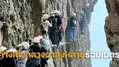 ระทึก นักท่องเที่ยวค้างเติ่งขอบผาสูง หลายร้อยเมตร เหตุคนทะลัก