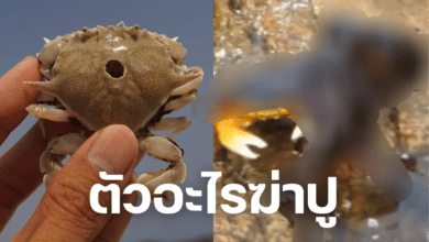 ตัวอะไรฆ่าปู เจาะกระดองเป็นรู ดูดกินเครื่องในไม่เหลือซาก ชาวเน็ตเฉลยตัวการสยอง