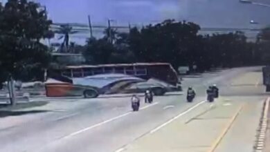 เปิดคลิปสลด รถจยย.ชนสลิงสิบล้อลากรถทัวร์ ดับคาสี่แยก 2 ศพ