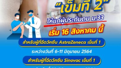พร้อมฉีดวัคซีนโควิดเข็ม 2 ประกันสังคม ม.33 16 ส.ค.นี้ ได้แอสตราเซเนก้า