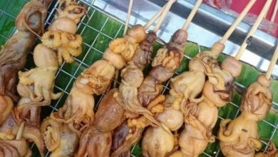 หนุ่มพบ ‘หมึกบลูริง’ เสียบไม้ขาย เตือนแล้วพ่อค้าไม่ฟัง