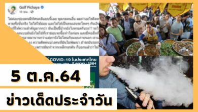 สรุปข่าวเด่น ประจำวันที่ 5 ต.ค. 64 ยอดผู้ติดเชื้อโควิด,น้ำเหนือไหลผ่านเขื่อนเจ้าพระยา,ชัยวุฒิหนุนบุหรี่ไฟฟ้าถูกกฎหมาย,คืนเงินจองซิโนฟาร์ม, เทศกาลกินเจภูเก็ต,จ่ายเงินเยียวยารอบตกหล่น,ดราม่า กอล์ฟ พิชญ