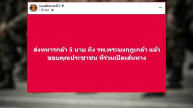 กองทัพภาค 2 ขอบคุณ ปชช. ส่งทหารกล้า 5 นายถึงโรงพยาบาลแล้ว