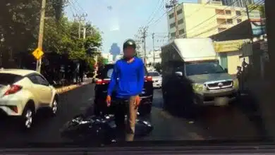 ระทึกกลางถนน! หนุ่มหัวร้อนทุบกระจกรถเก๋ง ขี่ จยย. ปาดแล้วล้ม (คลิป)