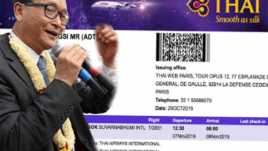 สม รังสี ไม่ยอมแพ้ ซื้อตั๋วสายการบินอื่น แม้การบินไทยไม่ให้ขึ้นเครื่องมากรุงเทพ เพื่อกลับกัมพูชา สม รังสี – คืบหน้ากรณี นาย สม รังสี นักเคลื่อนไหวทางการเมืองอดีตหัวหน้าพรรคฝ่ายข้าม ฝ่ายตรงข้ามสม