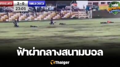 คลิปนาทีชีวิต ฟ้าผ่ากลางสนามฟุตบอล นักเตะตายคาที่ 1 เจ็บสาหัสอีก 4
