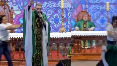 หญิงใจเด็ด ผลักนักบวชแอนตี้เกย์ร่วงเวที ต่อหน้าคนครึ่งหมื่น [คลิป]