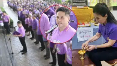 วราวุธ ศิลปอาชา นำข้าราชการ พม. กว่า 700 ชีวิต อ่านแถลงการณ์ แสดงความจงรักภักดีแด่ กรมสมเด็จพระเทพฯ กัญจนา น้องสาว สวมเสื้อสีม่วงทำบุญครบรอบวันเกิดปีที่ 64 วันที่ 15 ก.พ.67 นายวราวุธ ศิลปอาชา รัฐมนตรี