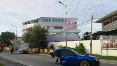 รถซูบารุ ชนแบริเออร์ขาด 2 ท่อน คนขับ-แฟนรอดตายปาฏิหาริย์ -ทะเบียนรถ
