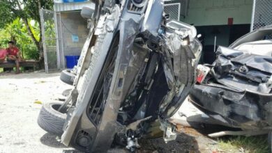 ผัวเจอเมียขับรถเก๋งกับชายอื่น ไล่ตามเฉี่ยวชนกัน บาดเจ็บ 2 ราย รถเสียหาย 3 คัน