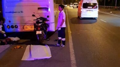 อุบัติเหตุ จยย.พุ่งชนท้ายรถบัสจอดรอรับผู้โดยสารริมถนน ดับคาที่