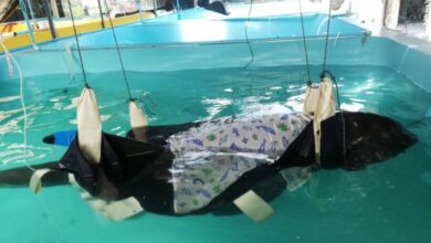 วันที่ 19 ก.พ.62 ผู้สื่อข่าวรายงานว่า ที่ศูนย์วิจัยและพัฒนาเพาะเลี้ยงสัตว์น้ำชายฝั่งเขต 4 กระบี่ เจ้าหน้าที่กลุ่มสัตว์ทะเลหายาก ศูนย์วิจัยและพัฒนาทรัพยากรทางทะเลและชายฝั่งทะเลอันดามัน กำลังให้การช่วยเ
