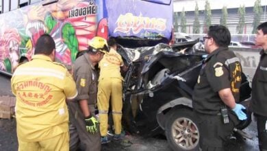 วัยรุ่น21ปี ขับรถส่งของลาซาด้า หลับในชนคนตาย เมื่อเวลา 05.30 น. วันที่ 3 ก.พ.63 เจ้าหน้าที่ตำรวจ สภ.บางเสาธง ได้รับแจ้งว่ามีอุบัติเหตุบนถนนเทพรัตน ช่องทางด่วนขาเข้าหลักกิโลเมตรที่ 23 ตรงจุดกลับรถสีทีโ