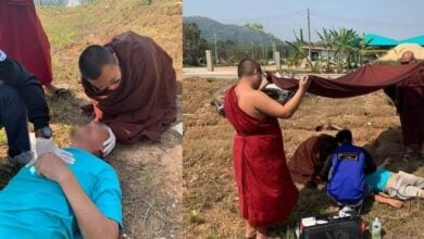 โซเชียลแห่ชม! พระสงฆ์ ช่วยกันปฐมพยาบาลผู้บาดเจ็บริมถนน