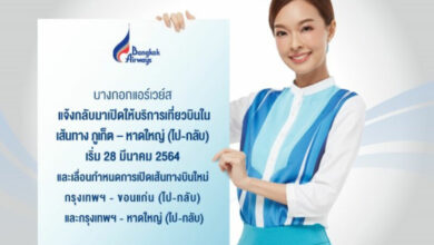 บางกอกแอร์เวย์ส เลื่อนเปิดเส้นทางกรุงเทพฯ – ขอนแก่น (ไป-กลับ) และเส้นทางกรุงเทพฯ -หาดใหญ่ (ไป-กลับ) ออกไปเป็นปี 2565 สายการบิน บางกอกแอร์เวย์ส แจ้งกลับมาเปิดให้บริการเที่ยวบินในเส้นทาง ภูเก็ต
