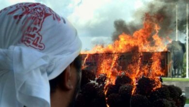 ชาวสวนปาล์ม จุดไฟเผ่าศพ นายปาล์มน้ำมัน หน้าศาลากลาง กระบี่