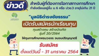 มอบโอกาสทางการศึกษา “มูลนิธิดำรงชัยธรรม” รับสมัครนักเรียนทุน รุ่นที่ 20/2564