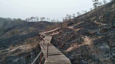 ‘เขาหล่น’ ไฟไหม้ รอบที่ 4 ที่เที่ยวนครนายก เผาวอด คาดโดนวางเพลิง