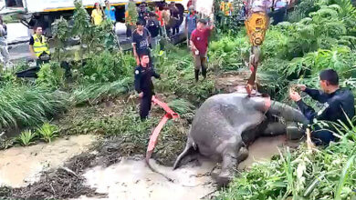 สุดเศร้า ช้างป่าถูกรถพ่วง 18 ชน ตายแล้ว