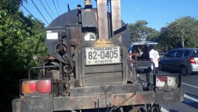 ดวงถึงฆาต! หนุ่มขับจยย.ชนท้ายหกล้อฉีดพ่นยางมะตอย ร่างกระแทกดับคาที่
